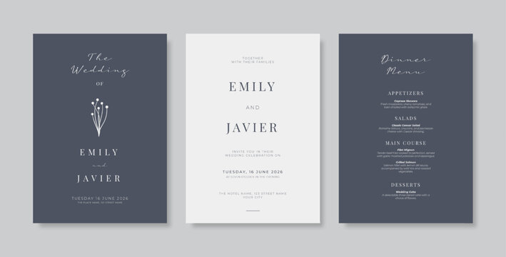 Simple wedding invitation template. minimalist wedding card template. trendy modern wedding invitation template.