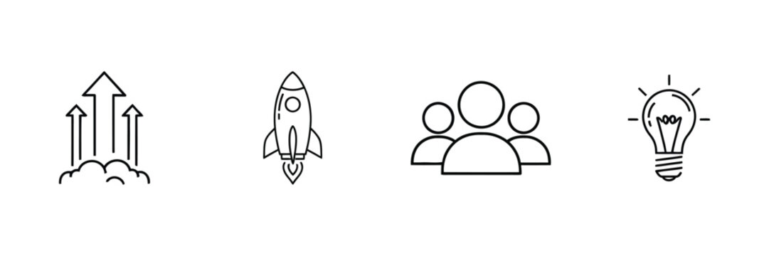 Empowering business concepts using innovative ideas, a rocket launch for growth, united teams, and upward success arrows – a modern design for startups and entrepreneurs
