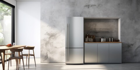 Modern fridge on grey kitchen Generative AI
