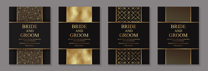 Set of vintage luxury black and gold vector invitation card