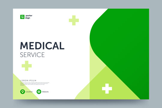 Medical and Healthcare banner design. Simple abstract geometric background in green color with place for text. Ideal for social media, poster, ad, print. Vector illustration
