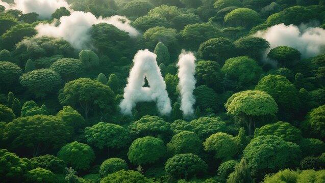 The harmony between the environment and artificial intelligence technology. Innovative connectivity for a futuristic approach to information access and online networks.