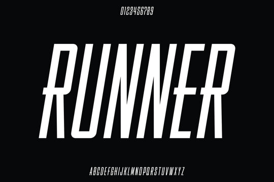 Modern tall sans serif alphabet display font vector. Runner sports typeface