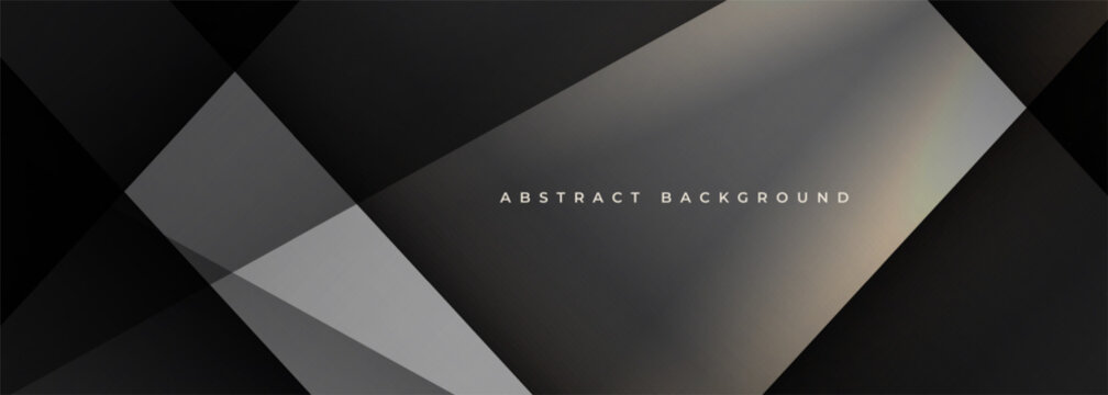 Black and grey modern abstract wide banner with geometric shapes. Dark gray abstract background. Vector illustration