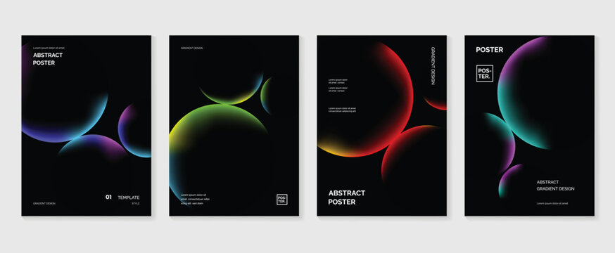 Geometric pattern background posters with color gradient shapes and dynamic pattern background. Modern trendy abstract posters with circles and color gradient overlay on vector neon glow background