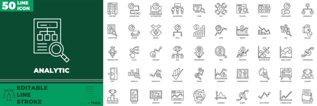 Analytic Line Editable Icons set. Vector illustration in modern thin line style of medical icons: analysis, research, strategy, etc