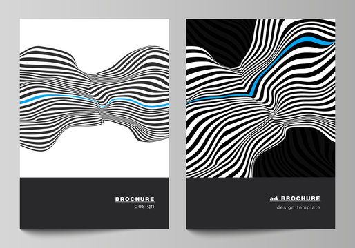 Vector illustration layout of A4 format modern cover mockups design templates for brochure, magazine, flyer, booklet, report. Abstract big data visualization concept backgrounds with lines and cubes.
