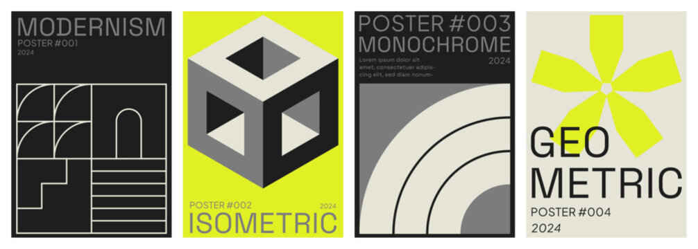 Set of modernist posters. Contemporary cover designs with primitive and minimalist shapes.