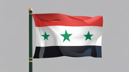 A modernized Syrian flag design featuring vibrant colors and clean lines, isolated on a transparent background. Includes symbolic elements representing national identity and unity. Ideal for education