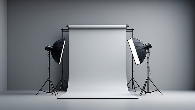 Professional Studio Setup with Backdrop and Lighting Equipment Ready for Photography or Videography Shoots Creating a Clean and Versatile Environment for Content Creation