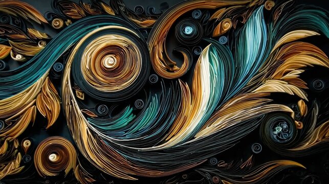 Gold and black art deco pattern, in style of organic and naturalistic compositions, Generative AI creation, suitable for retro, luxury, or decorative art designs.