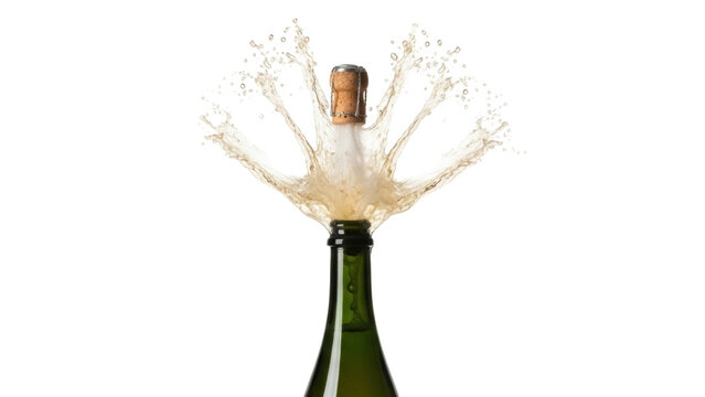 Isolated sparkling wine bottle exploding with splash, celebrating a momentous occasion