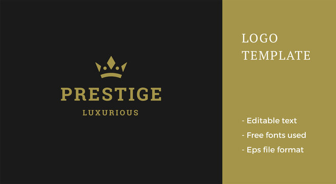 Minimalist golden jewelry crown monarchy insignia luxury logo decorative design vector