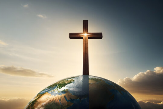 A concept of spreading the word with a Holy cross and the earth