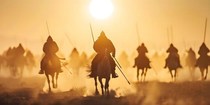 Mongol cavalry advances with spears and bows showcasing disciplined warfare tactics. Concept Mongol warriors, Cavalry warfare, Spear tactics, Bow and arrow, Disciplined advance