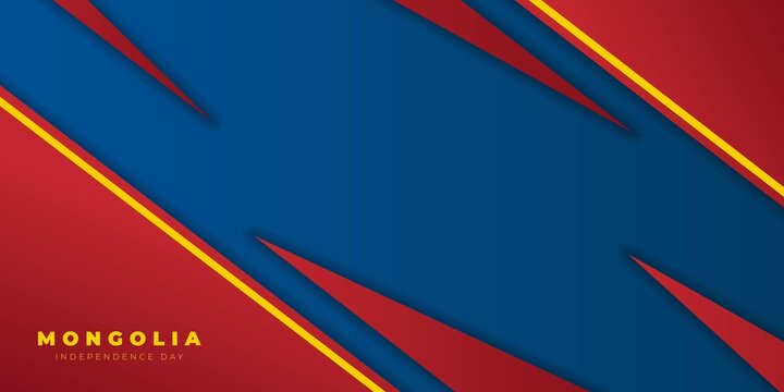Blue and red geometric abstract background with yellow line design. Mongolia independence day template design.