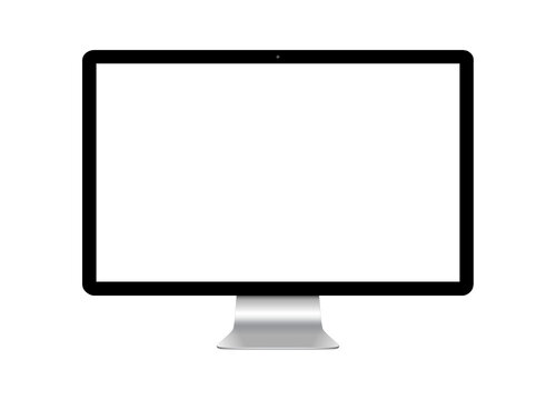 Computer monitor mockup with blank white screen for presentation or web design. Realistic silver desktop display. Modern PC device template isolated on white background. Vector.