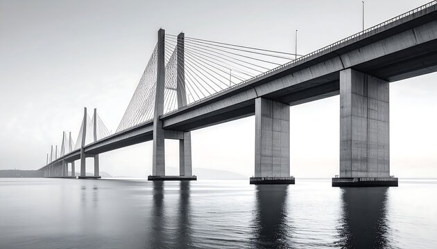 Modern concrete bridge spanning calm water