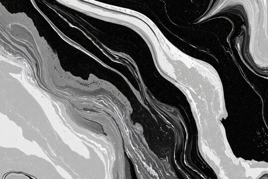 Abstract black and white marble pattern with fluid shapes and dy