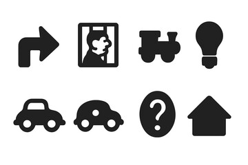 Monopoly Icon Grid. Solid, filled icon set of monopoly board spaces: go, jail, free parking, railroad, utilities, chance, community chest, property. Solid,