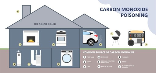 CO level chest pain loss of consciousness gas death cherry red skin cyanide toxicity motor car fuel  methylene chloride blood prevent alarm oxygen toxic harmful danger device detect safety silent leak
