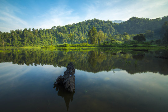 Beautiful lake no people with green forest at Situ Gunung West Java Indonesia