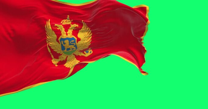 Montenegro Flag Loop. Realistic 4K. 30 fps flag of the Montenegro. Montenegrin flag waving in the wind. Seamless loop with highly detailed fabric texture.