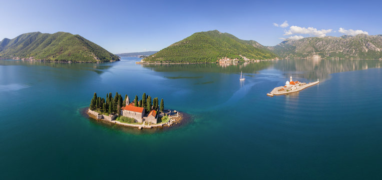 Aerial view of Sveti Juraj on Saint George island, Kotor Bay, Montenegro