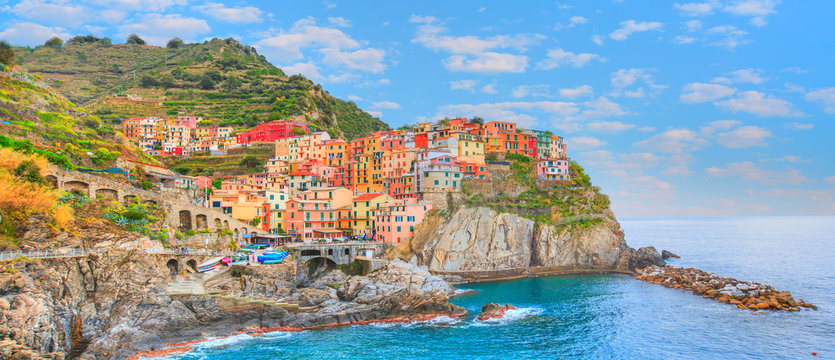 Beautiful colorful cityscape on the mountains over Mediterranean sea  Europe  Cinque Terre