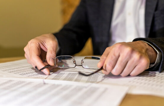 Analysing of accounting and financial documents, diagrams with calculator