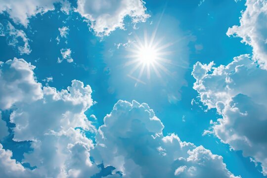 Bright sunlight filtering through puffy white clouds, ideal for background or mood setting