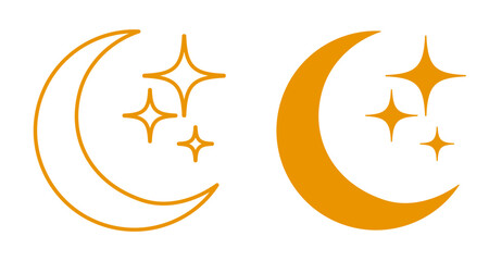 Crescent icon, moon and stars sign isolated