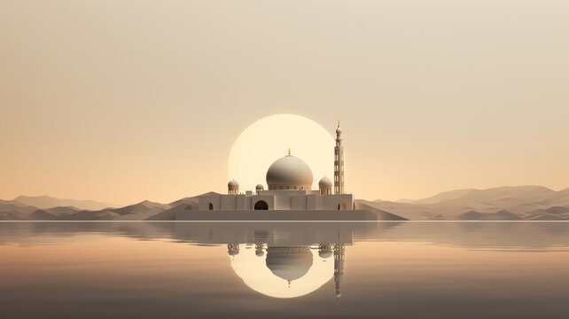 Ramadan kareem crescent moon and mosque islamic background eid mubarak concept