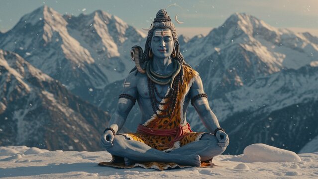 Depiction of Lord Shiva, one of the principal deities in Hinduism, revered as the god of destruction and transformation. Commonly portrayed with matted hair, a crescent moon