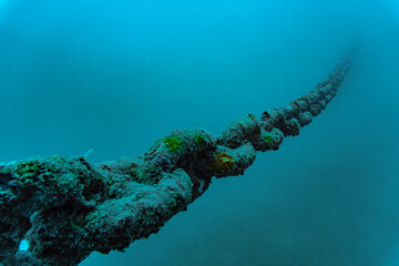 the mooring chain of the Sattakut wreck off the coast of Koh Tao