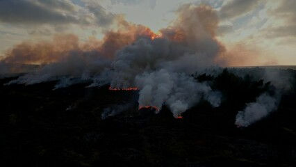 Burning heather as management of moorland, Yorkshire, UK.