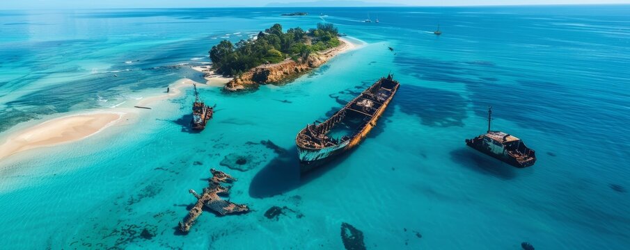 An aerial view of the Shipwrecks on Moreton Island Queensland Australia. Creative Banner. Copyspace image