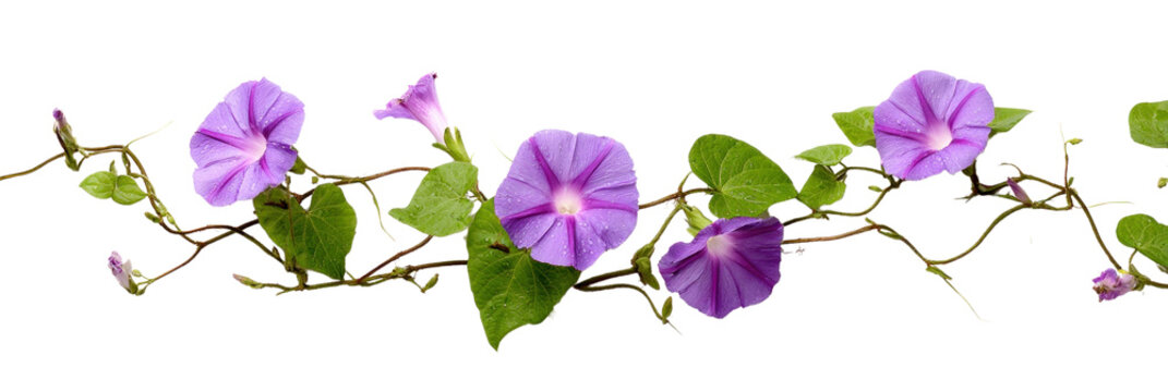 Isolated image of purple morning glory flower on png file at transparent background.
