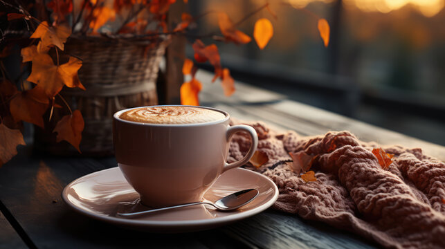 Warm and soft-focused scene of a steaming cup of coffee on a minimalist desk illuminated by golden morning sunlight, evoking calm, comfort, and slow-living vibes.
