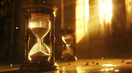 hourglass placed on a neutral background symbolizes the passage of time, the fleeting nature of life, and the balance between past and future, evoking reflections on mortality and existence