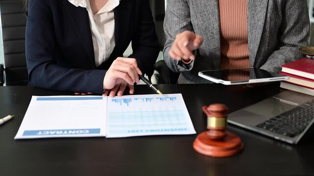 business people and lawyers discussing contract papers sitting at the table. Concepts of law, advice, legal services