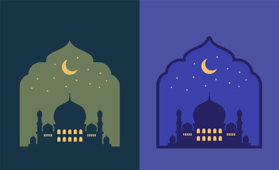 Islamic windows arches mosque ramadan decoration silhouette vector illustration