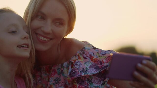 Caucasian mother and daughter enjoying leisure time outdoors on mother's day