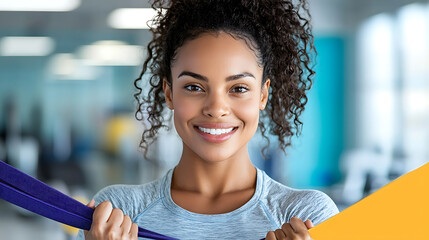 Empowering fitness journey personal trainer assisting client with resistance bands at a modern gym fostering strength and confidence in a motivating environment