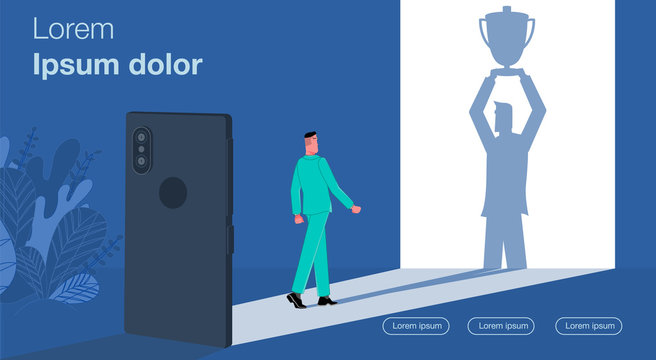 Winner. Businessman sweeps his shadow and represents his success. Business vector concept illustration.