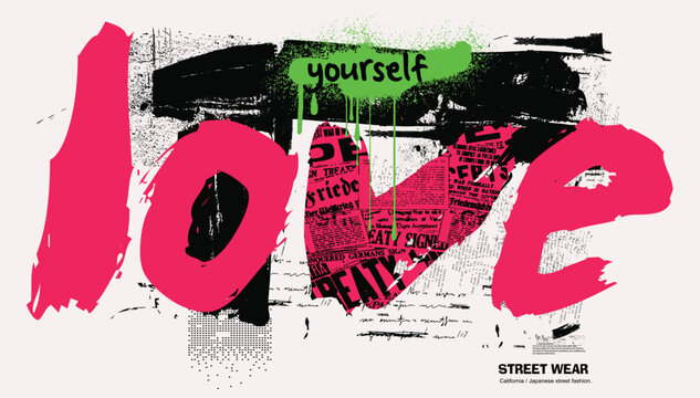 Slogan of love yourself, graffiti slogan print with neon spray, t shirt graphics print vector illustration design, Urban typography hipster street art for graphic t- shirt.eps