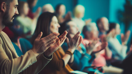 Happy people clapping and supporting each other in a workshop setting