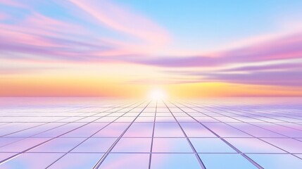 Tranquil Sunset Over a Gridded Horizon: A Dreamlike Vista