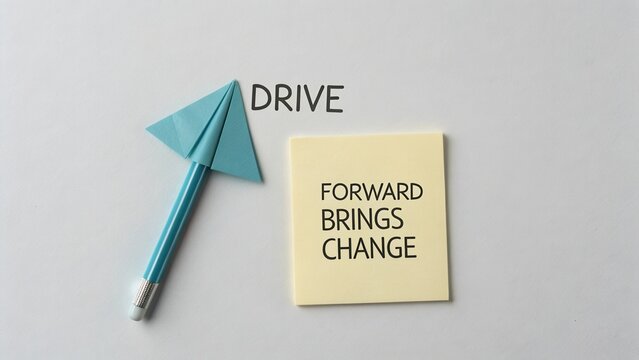 Motivational Quote to Inspire Progress in Business and Personal Growth with Paper Arrow and Sticky Note Display