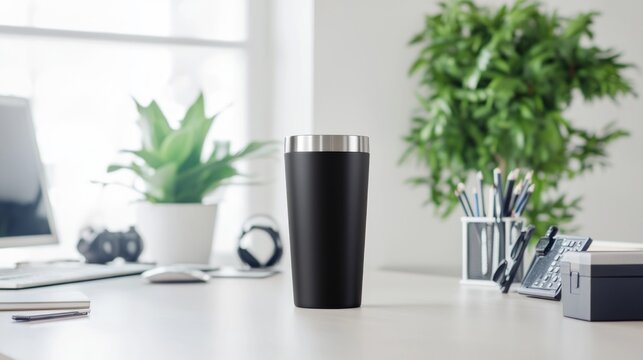 Goal setting tools arranged on a desk with a vision board and motivational notes Stock Photo with side copy space.
